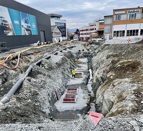 Akkurat nå pågår det arbeid med kulverten og grunnarbeidet for gang- og sykkelveien. Rørarbeider under bakken er i sluttfasen i den vestre delen mot Hillevågsveien, men fortsetter østover fra Felleskjøpet sitt anlegg og mot Hamnevegen. Et nytt belysningsanlegg skal også installeres.